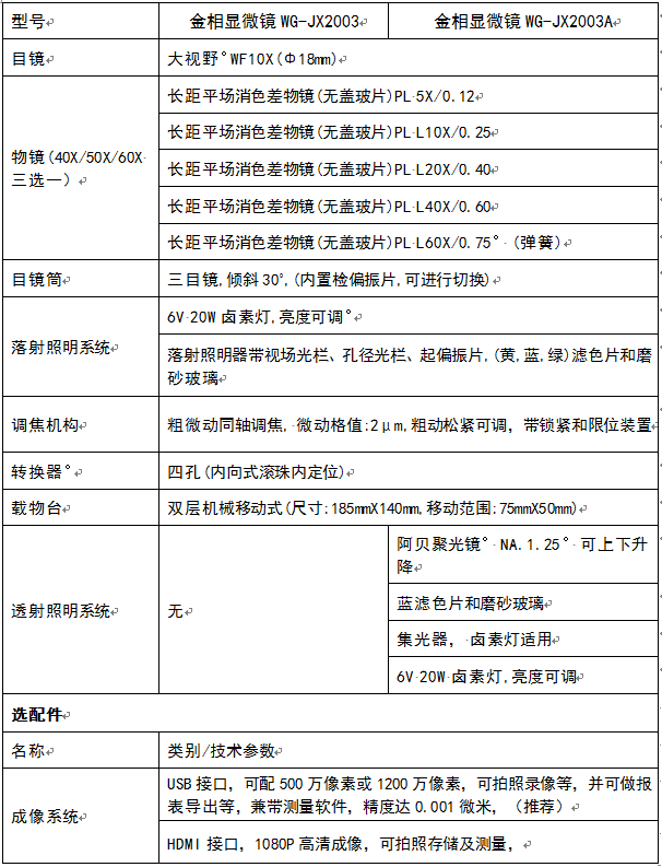 WG-JX230/230A系列透反射正置金相顯微鏡是適用于對不透明物體或透明物體的顯微觀察。本儀器配置落射與透射照明系統、長距平場消色差物鏡(無蓋玻片)、大視野目鏡和內置偏振觀察裝置,具有圖像清晰、襯度好,操作方便等特點,是生物學、金屬學、礦物學、精密工程學、電子學等研究的理想儀器。適用于學校、科研、工廠等部門使用。